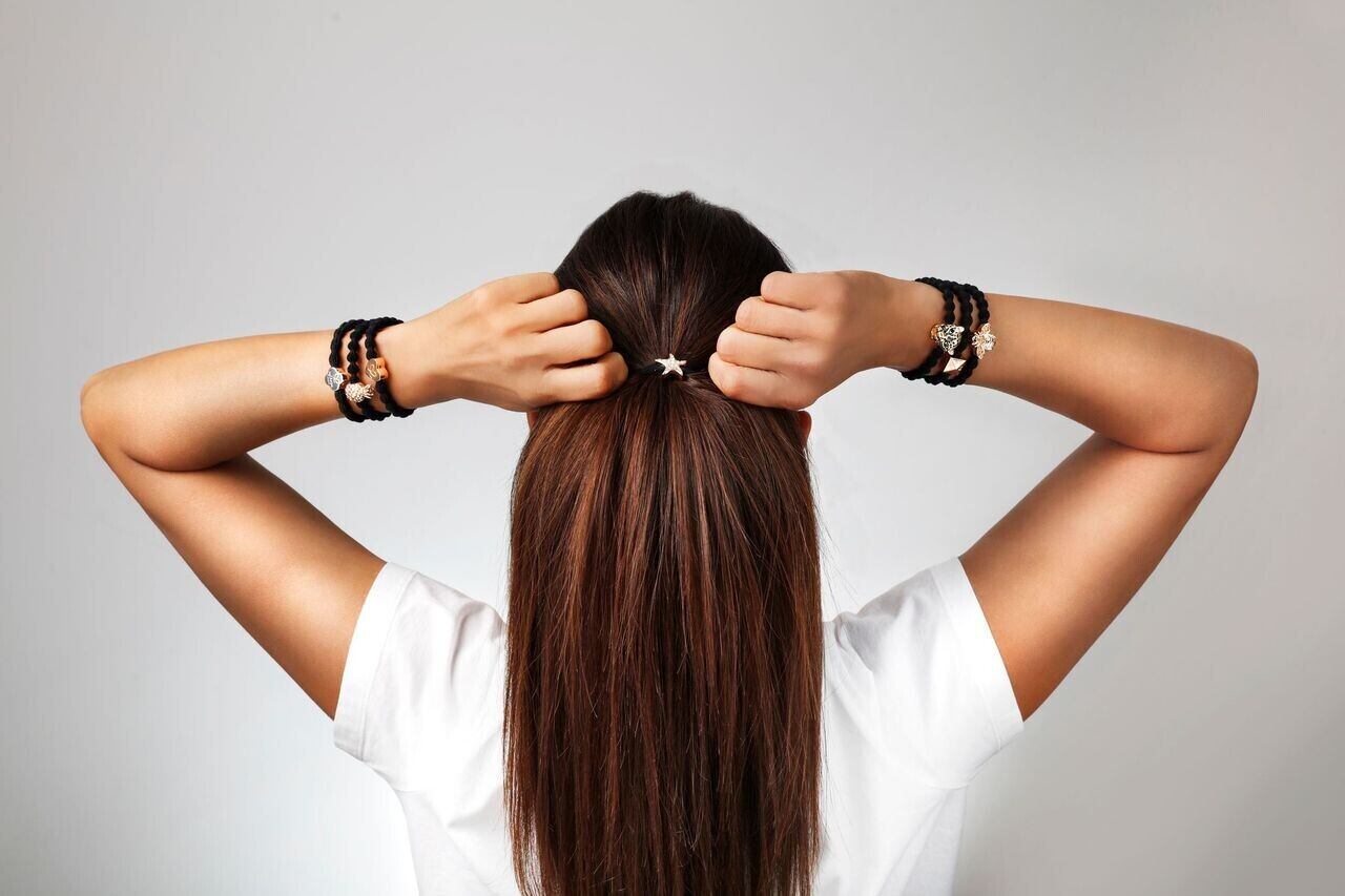 髪を結ぶだけでなく、手首に付けてブレスレットとしてもその存在感を発揮します。